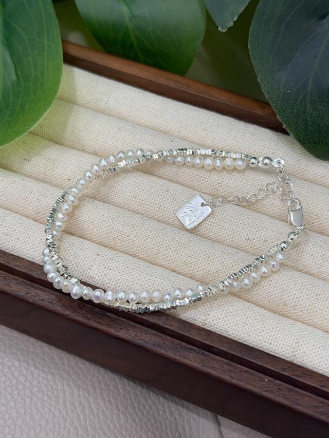 (精選優惠)B1528 4mm珍珠碎銀管手鏈