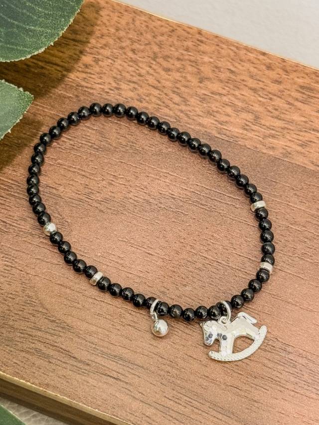 B1552 閃片小馬黑瑪瑙彈性手鏈