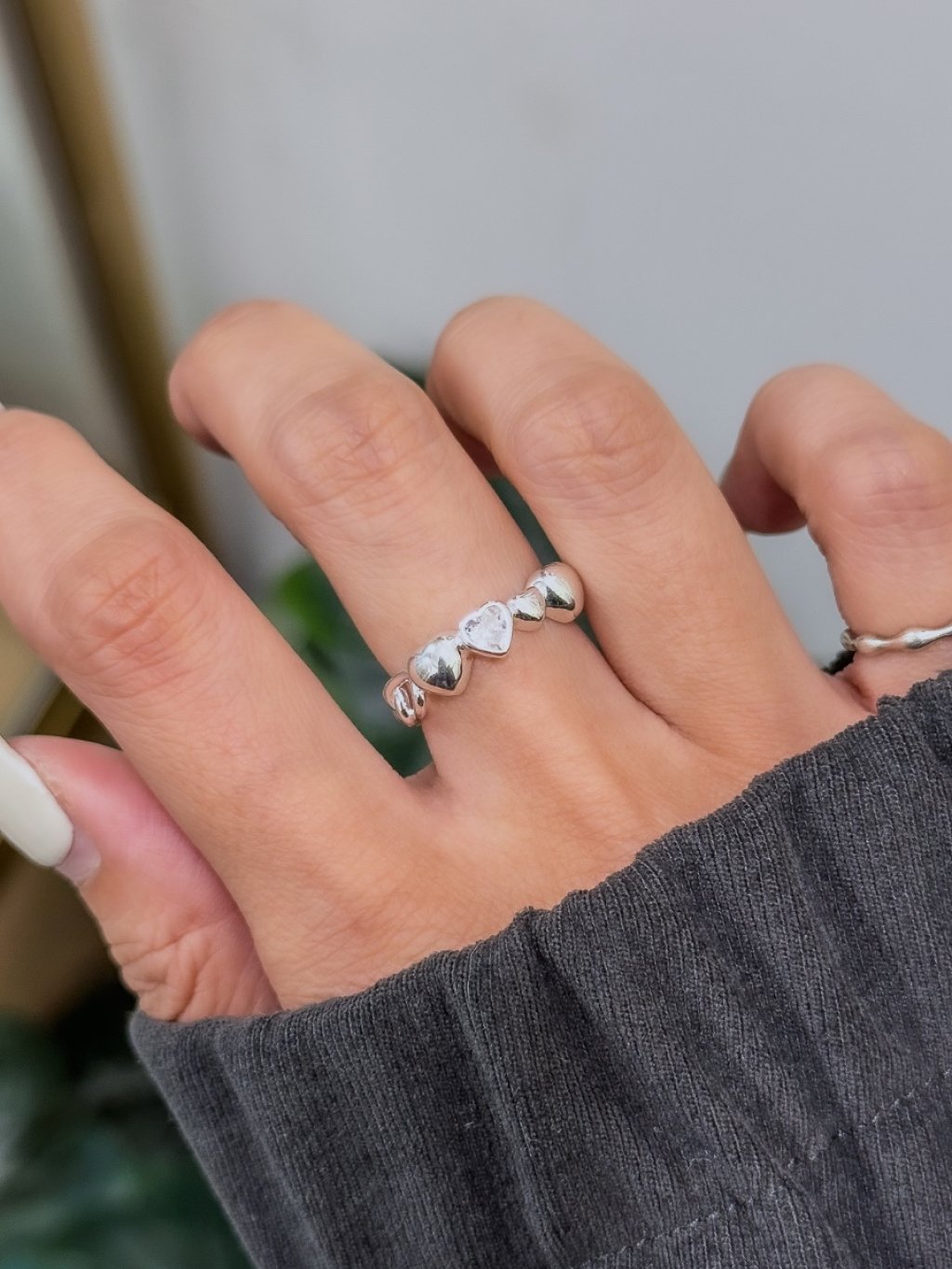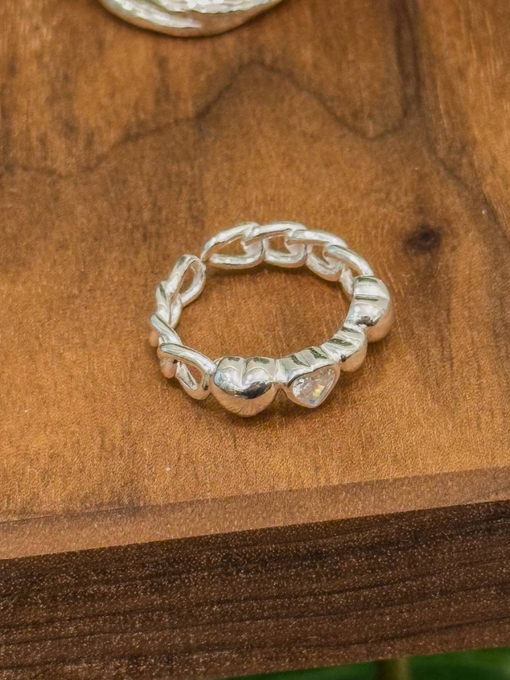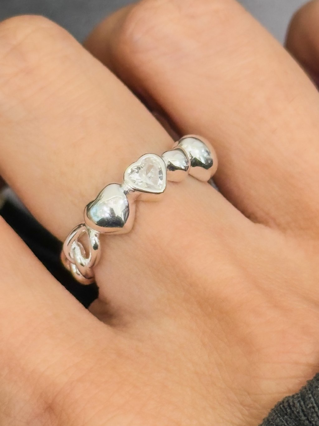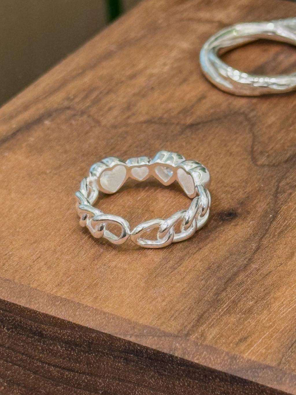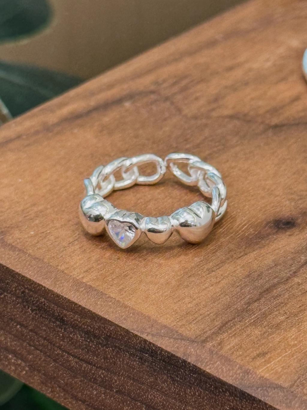 R1721 開口線條拼心心鋯石戒指