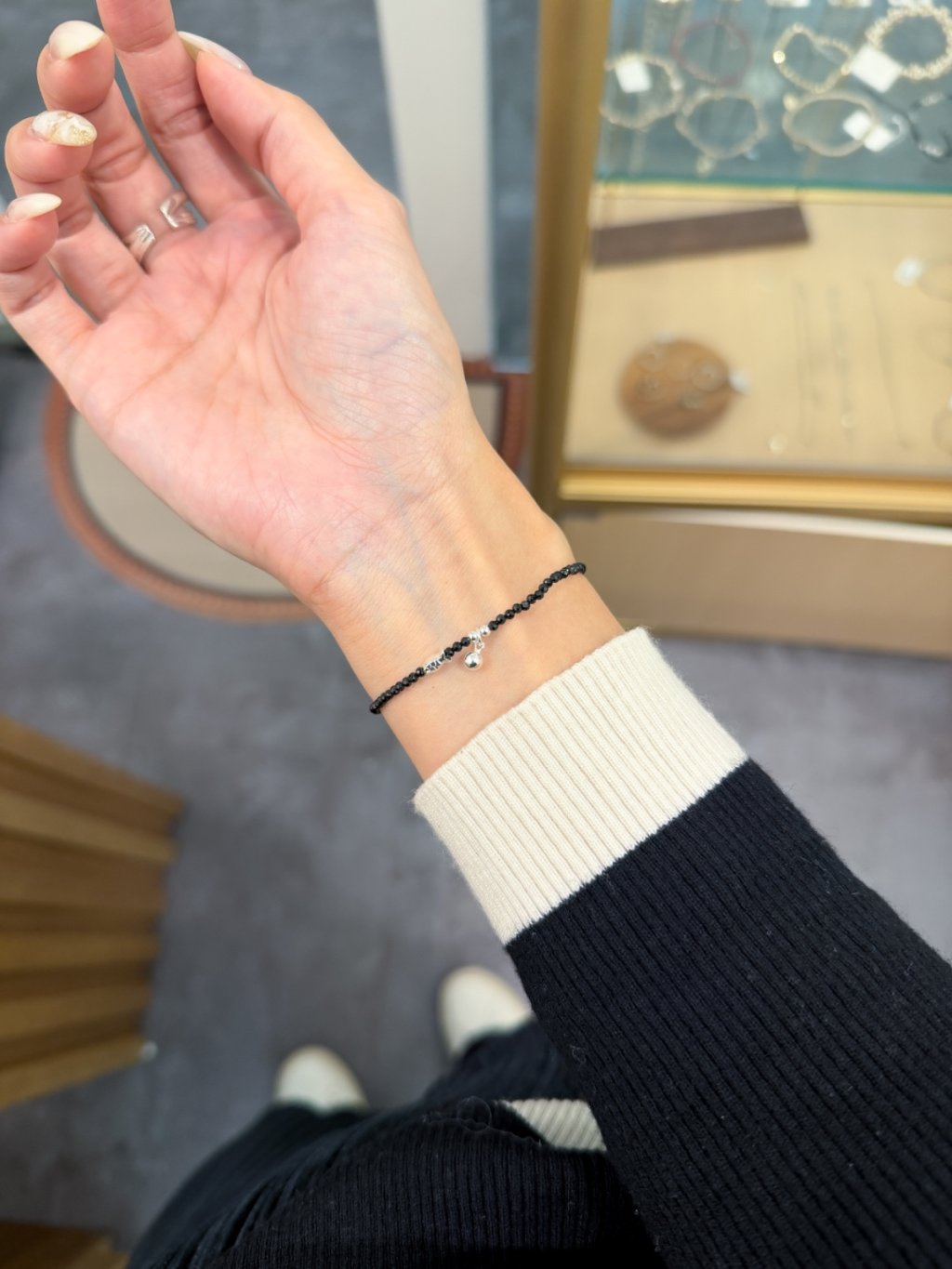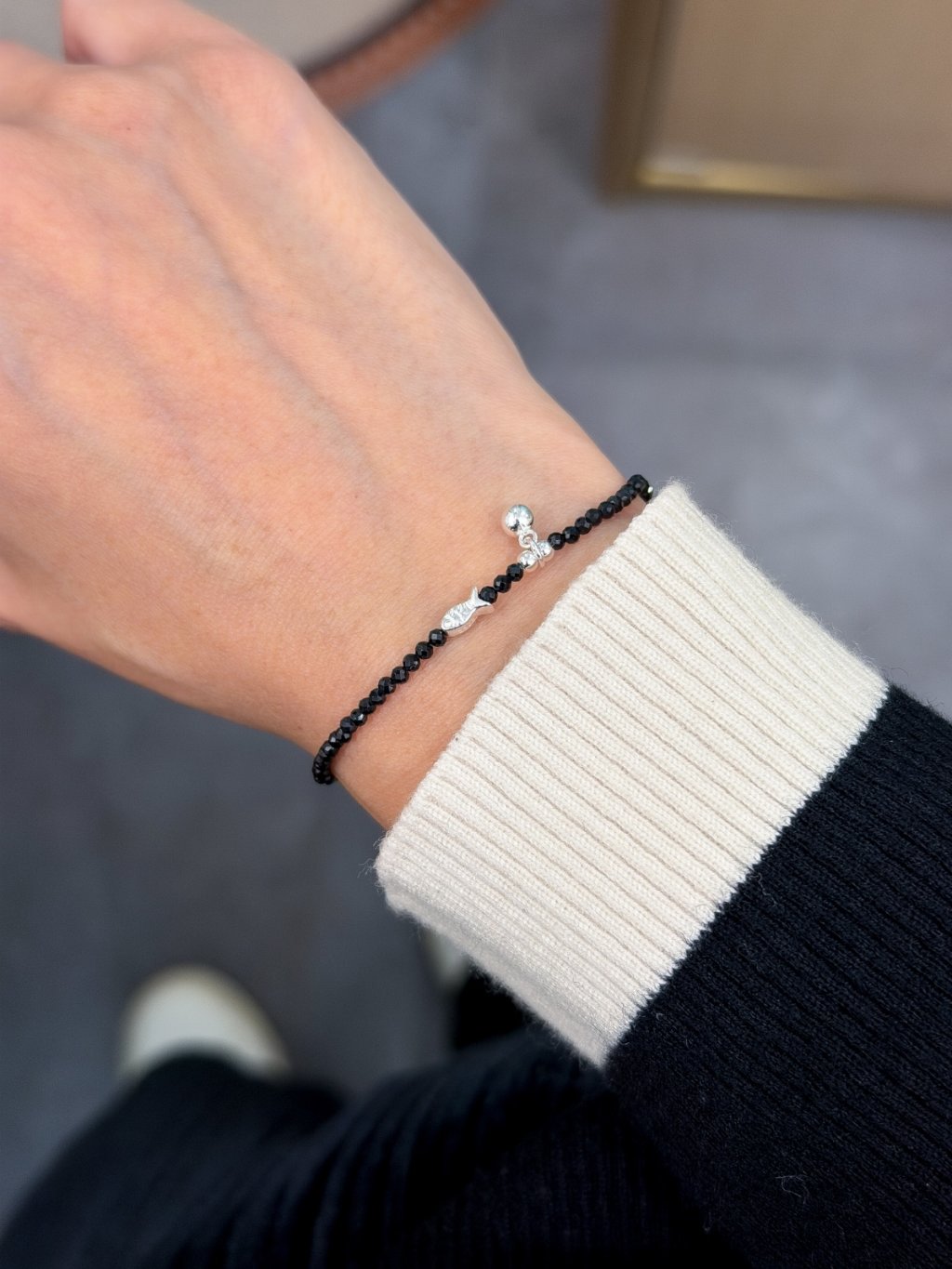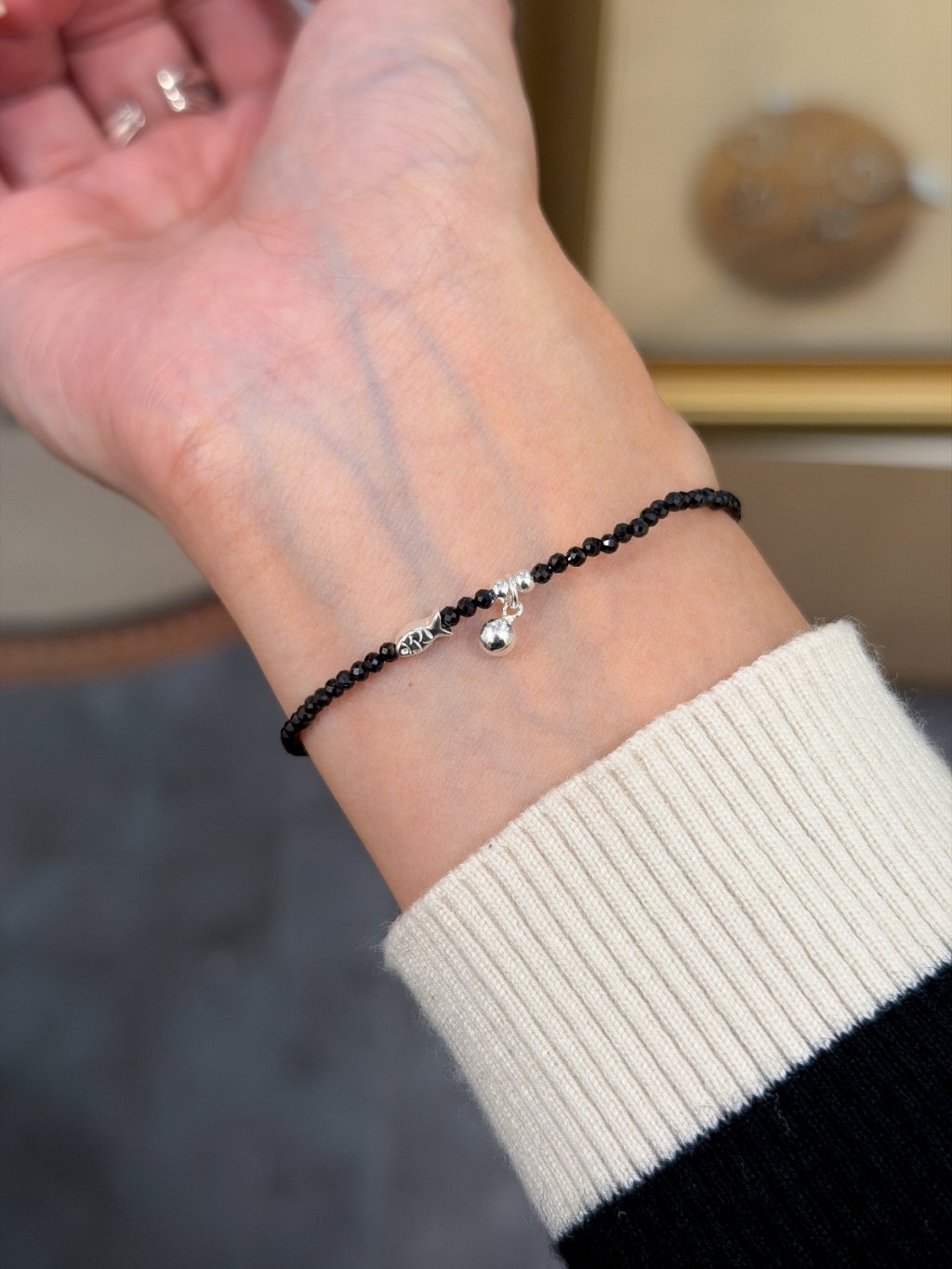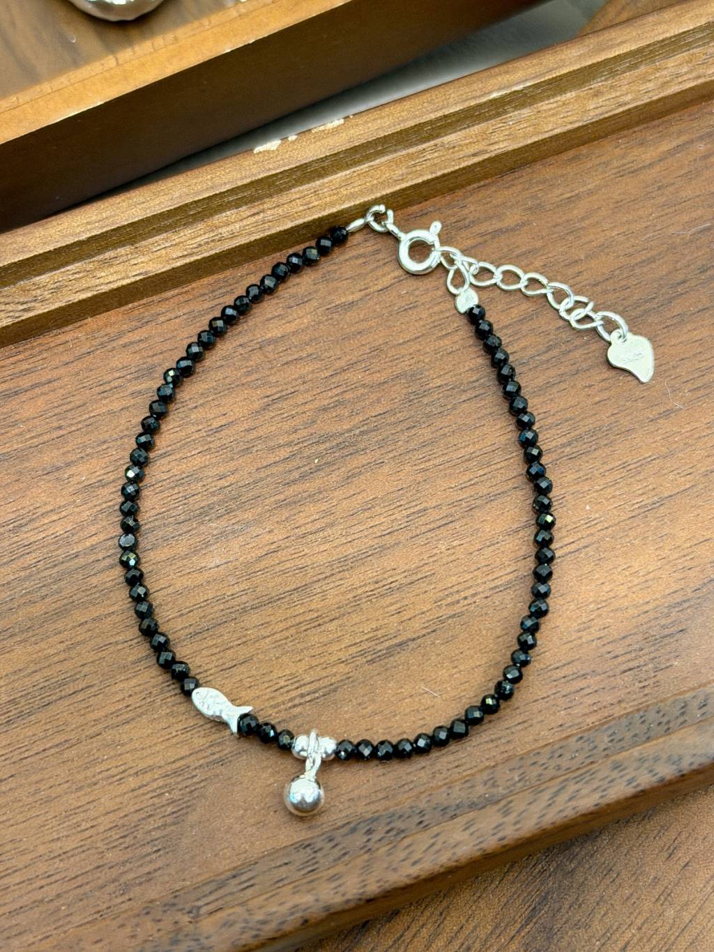 B1554 2mm黑尖石小魚手鏈