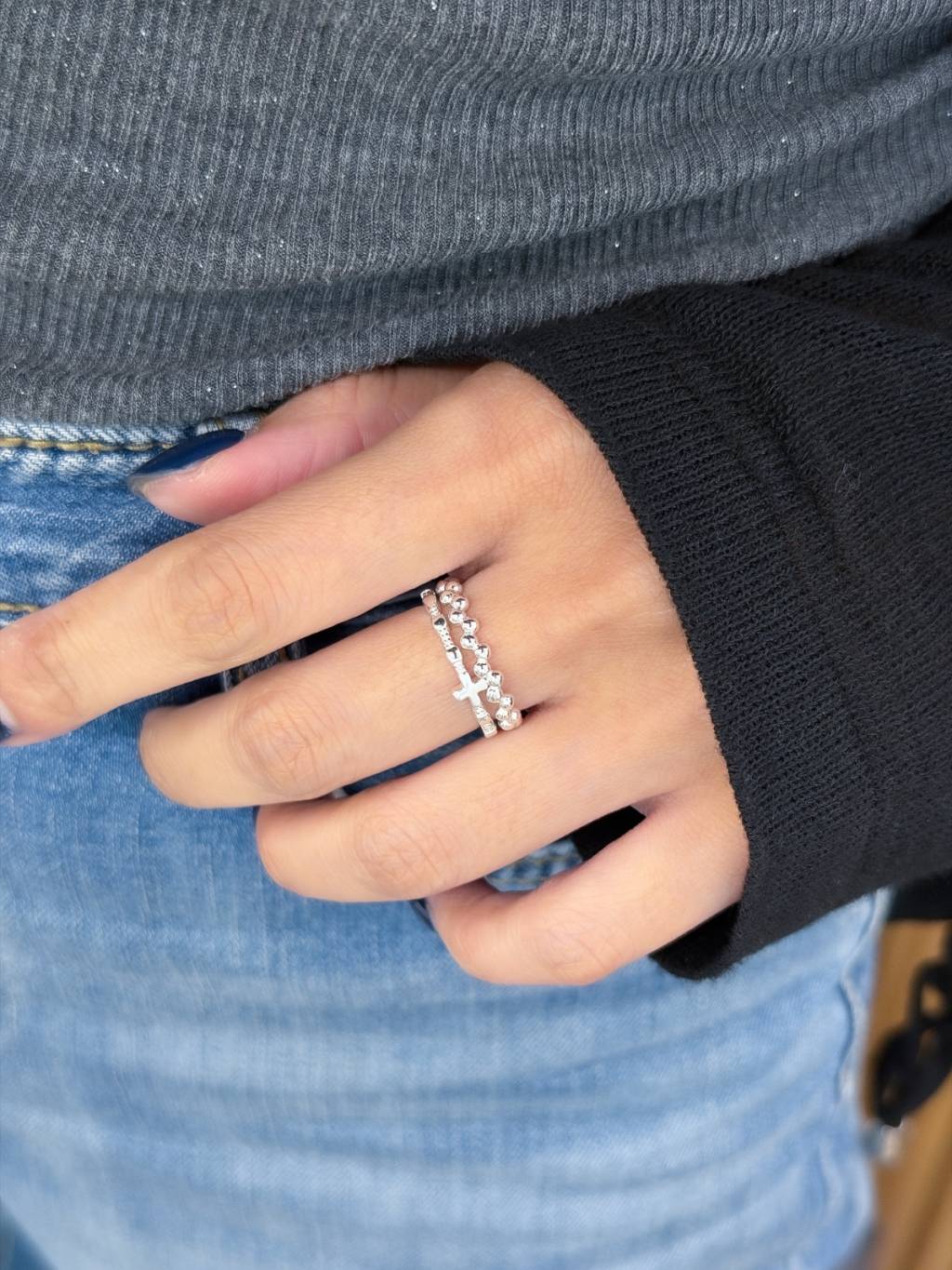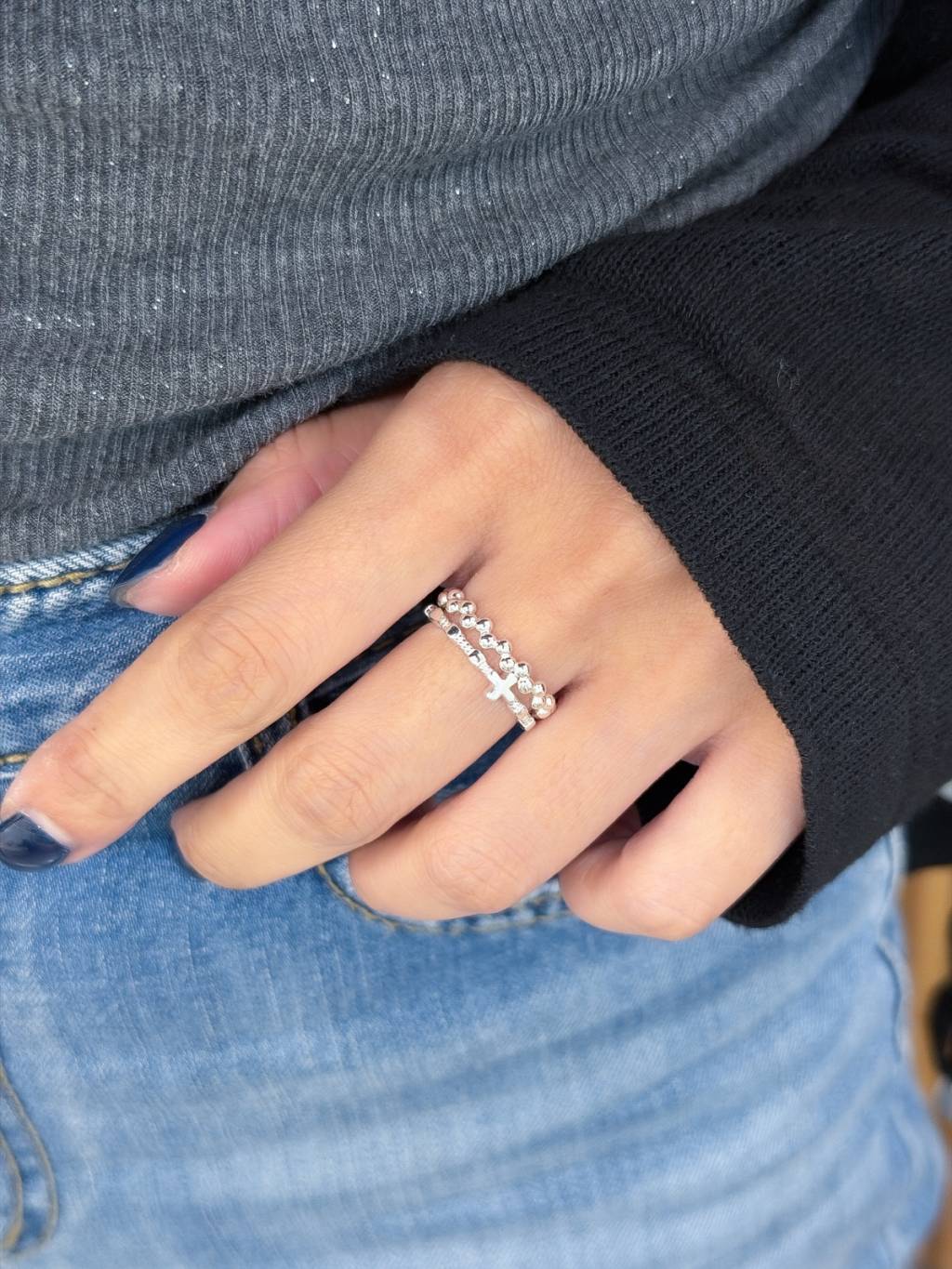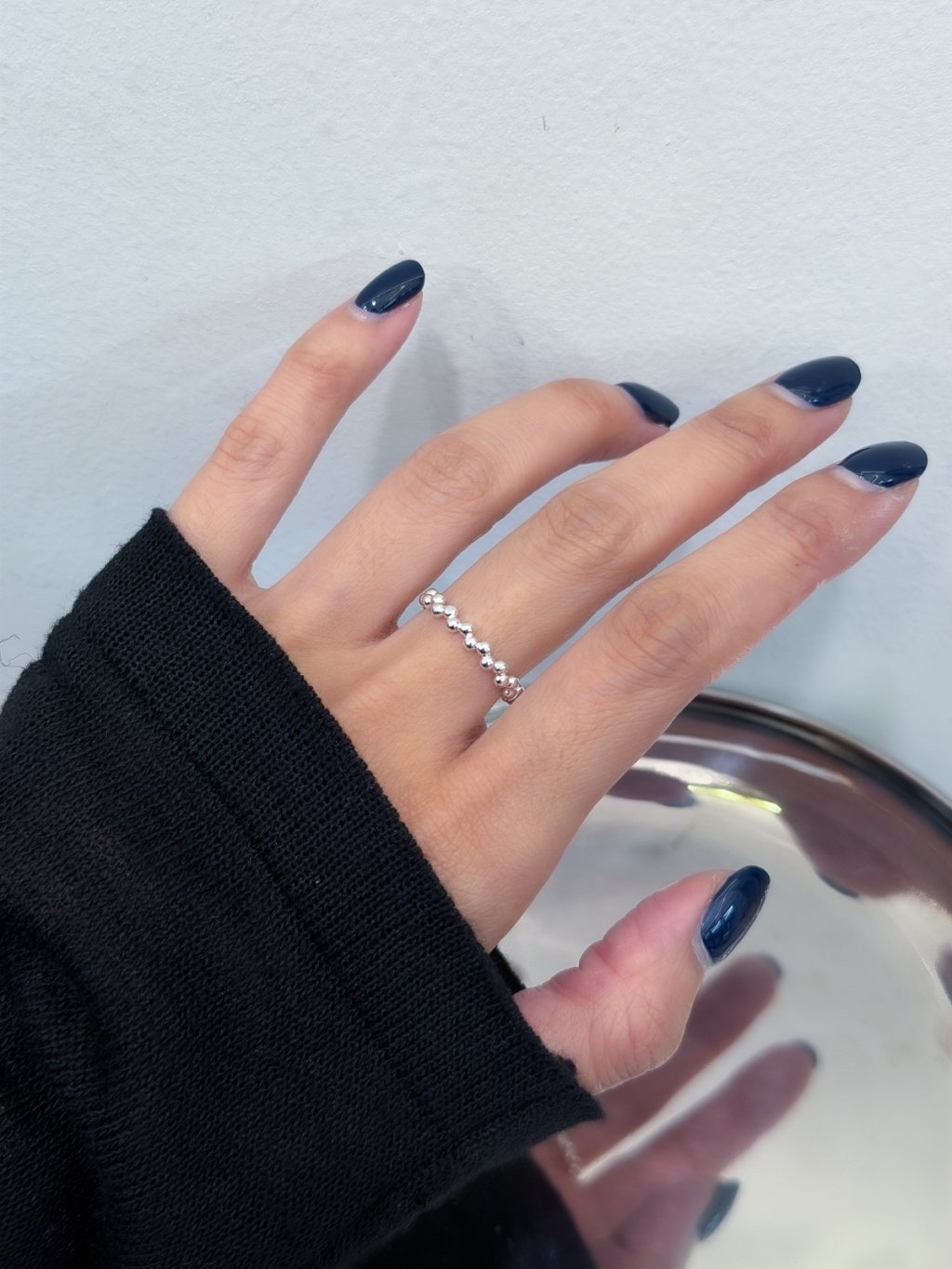 R1762 飽滿小圓珠波浪戒指